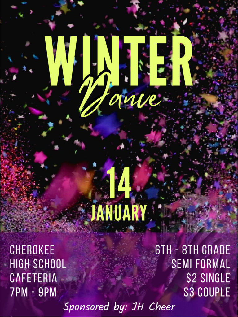 Cherokee will be hosting a Spelling Bee in January for 1st - 8th grade students! More information will be shared in December!